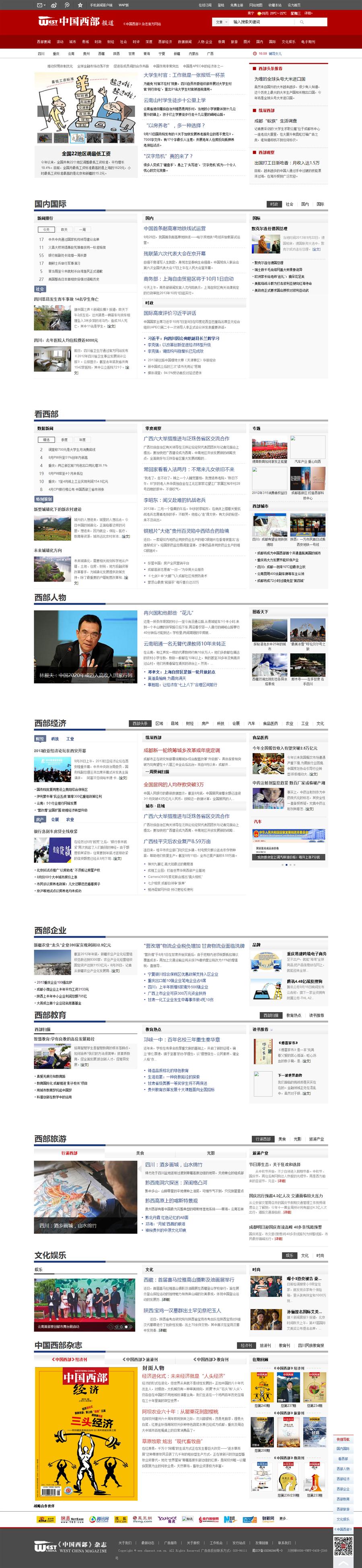 中國(guó)西部報(bào)道是《中國(guó)西部》雜志社官方網(wǎng)站。立足西部,依托《中國(guó)西部》雜志社旗下報(bào)刊,整合國(guó)內(nèi)主流媒體公共資源,深度報(bào)道中國(guó)經(jīng)濟(jì)、文化、教育、旅游以及城市和區(qū)域發(fā)展的綜合網(wǎng)站。