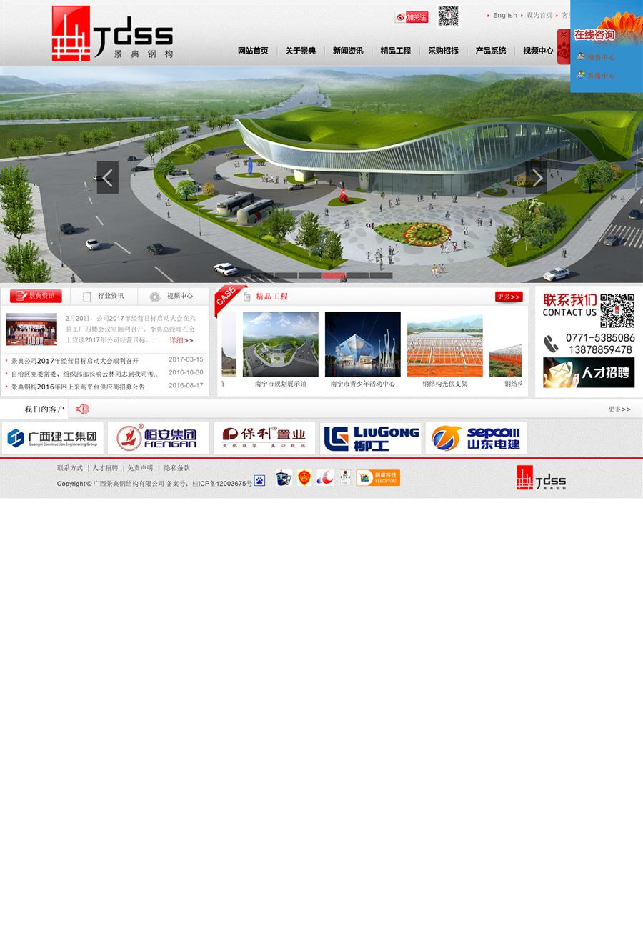 廣西景典鋼結(jié)構(gòu)有限公司位于廣西南寧市桂春路南二里8號(hào)和興大廈13層,生產(chǎn)基地坐落于廣西南寧六景工業(yè)園區(qū)內(nèi)。 公司專注于綠色鋼結(jié)構(gòu)裝配建筑的研發(fā)、制造、安裝,咨詢與服務(wù)。具有鋼結(jié)構(gòu)工程專業(yè)承包壹級(jí)資質(zhì)及設(shè)計(jì)、制造資質(zhì),建筑裝飾裝修工程、建筑幕墻工程設(shè)計(jì)與施工貳級(jí)資質(zhì),通過并有效執(zhí)行國(guó)際標(biāo)準(zhǔn)質(zhì)量管理體系認(rèn)證。